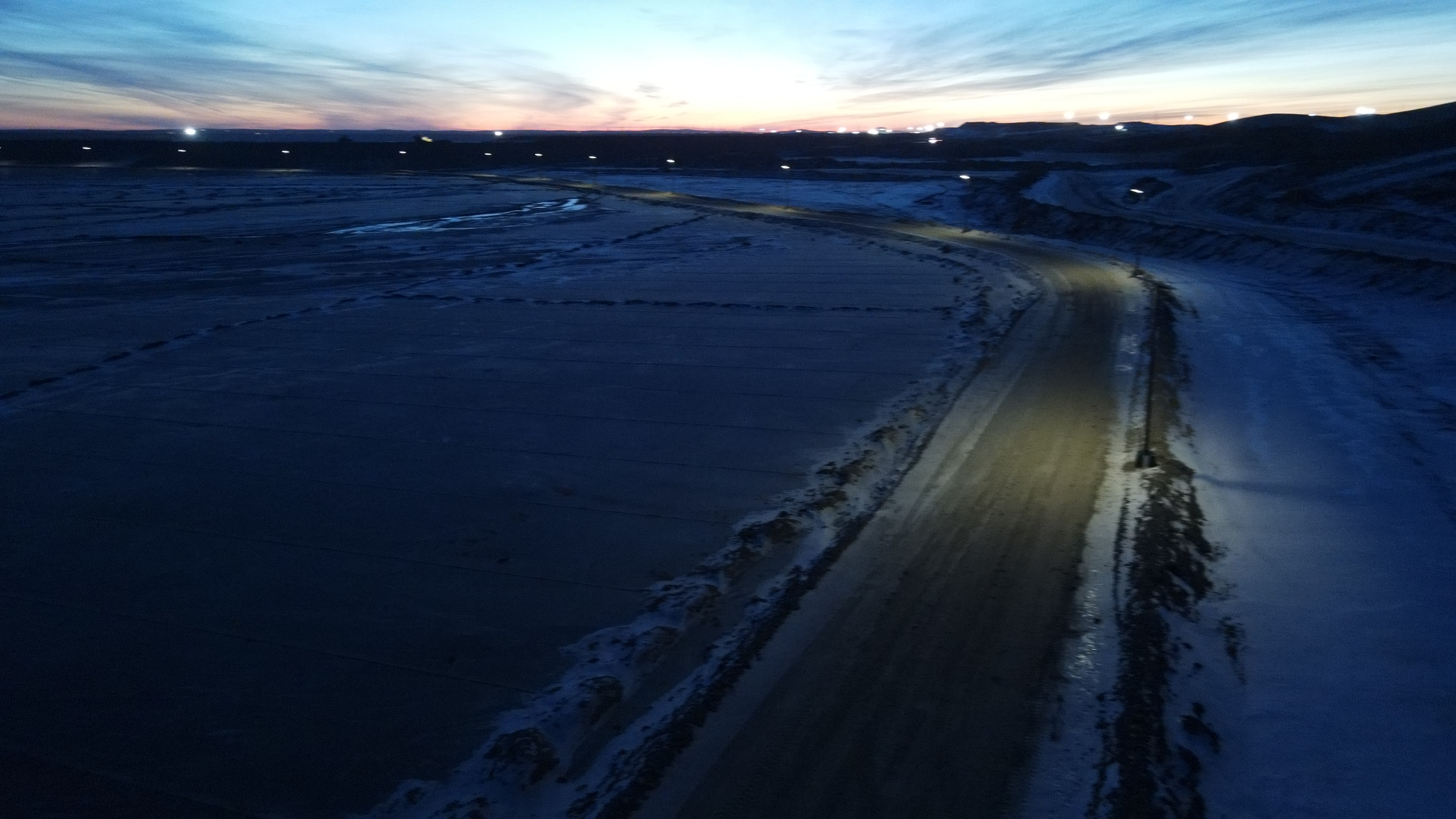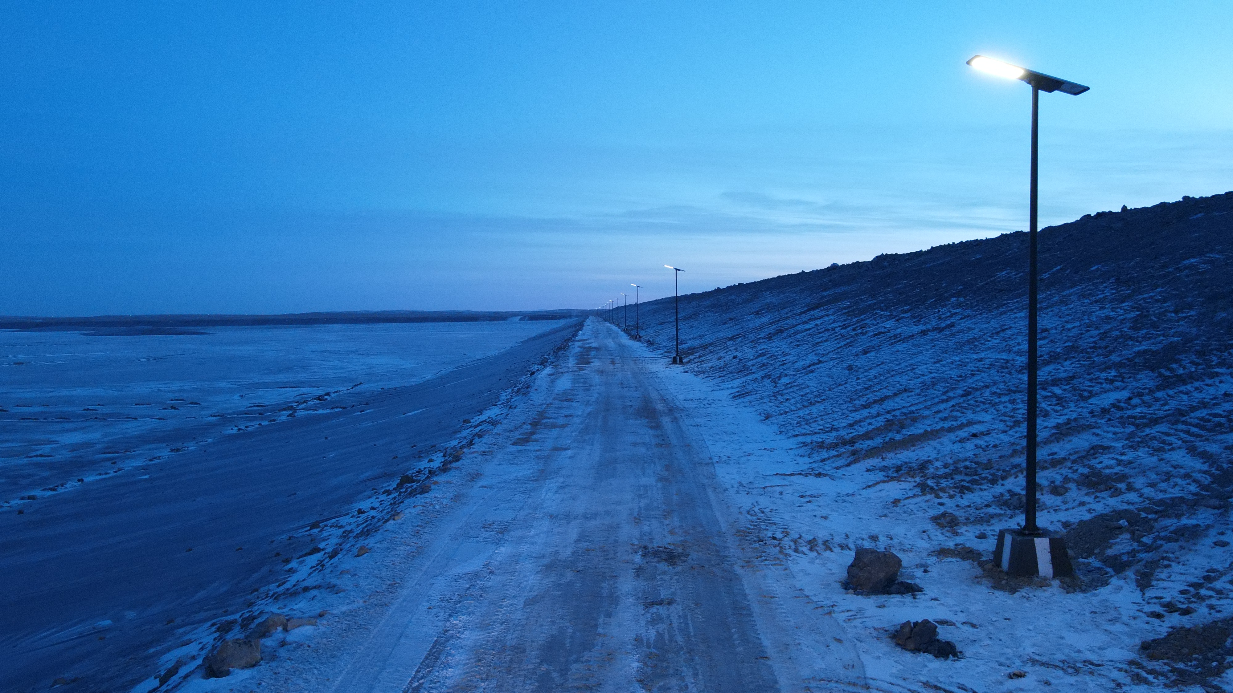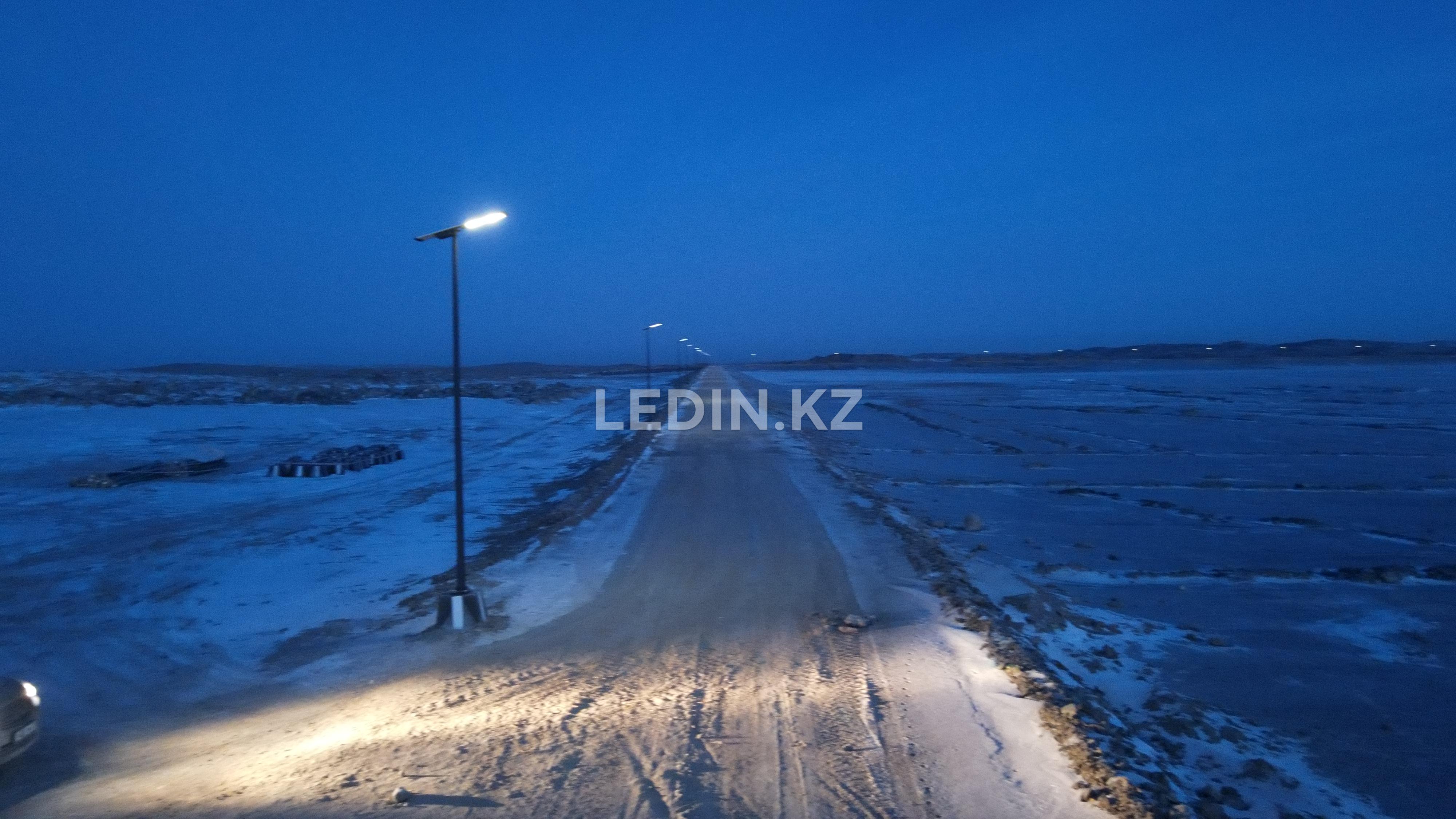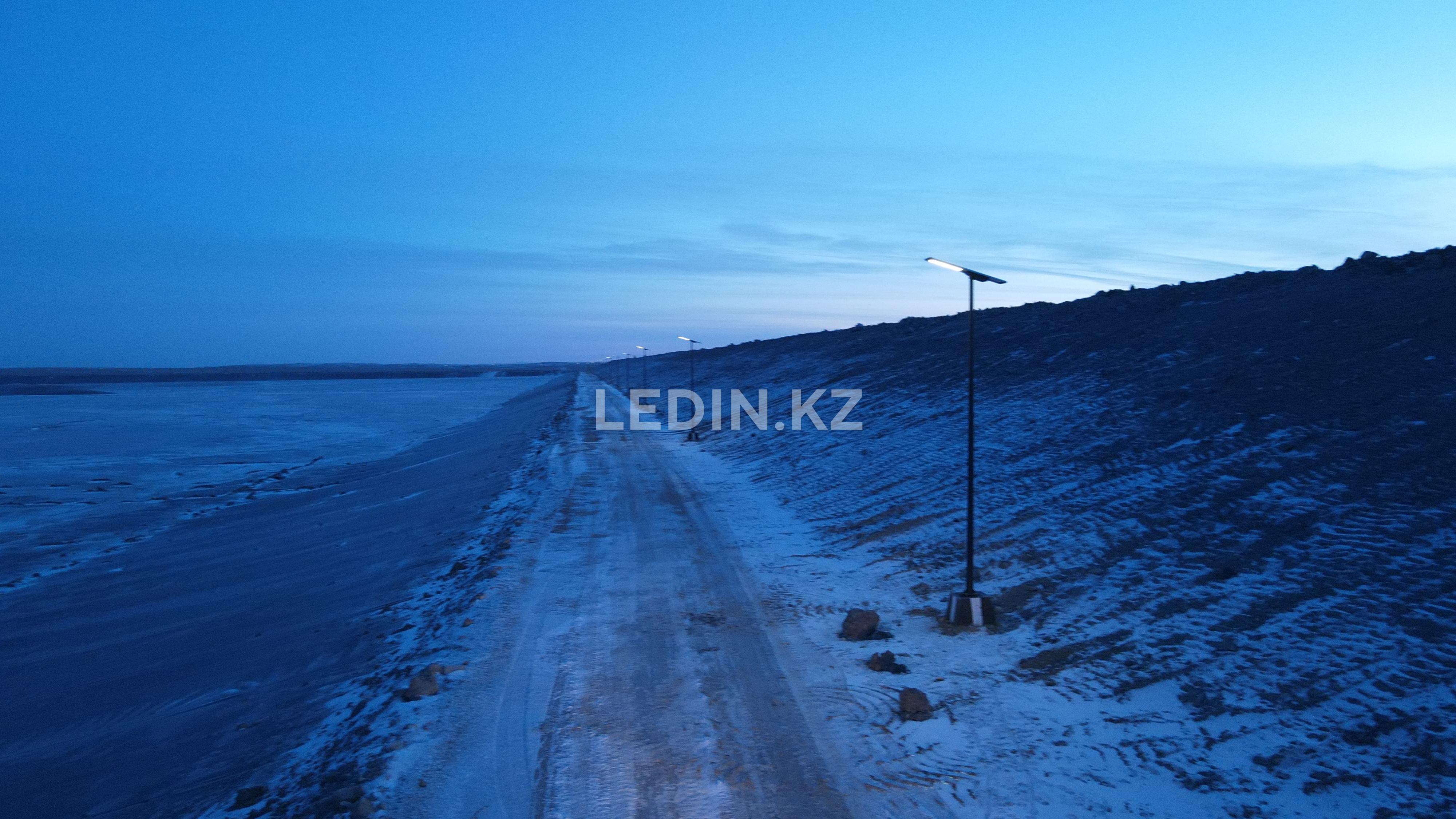 Для освещения дамбы хвостохранилища вдоль автомобильной дороги применены автономные консольные светодиодные светильники мощностью 80 Вт.
