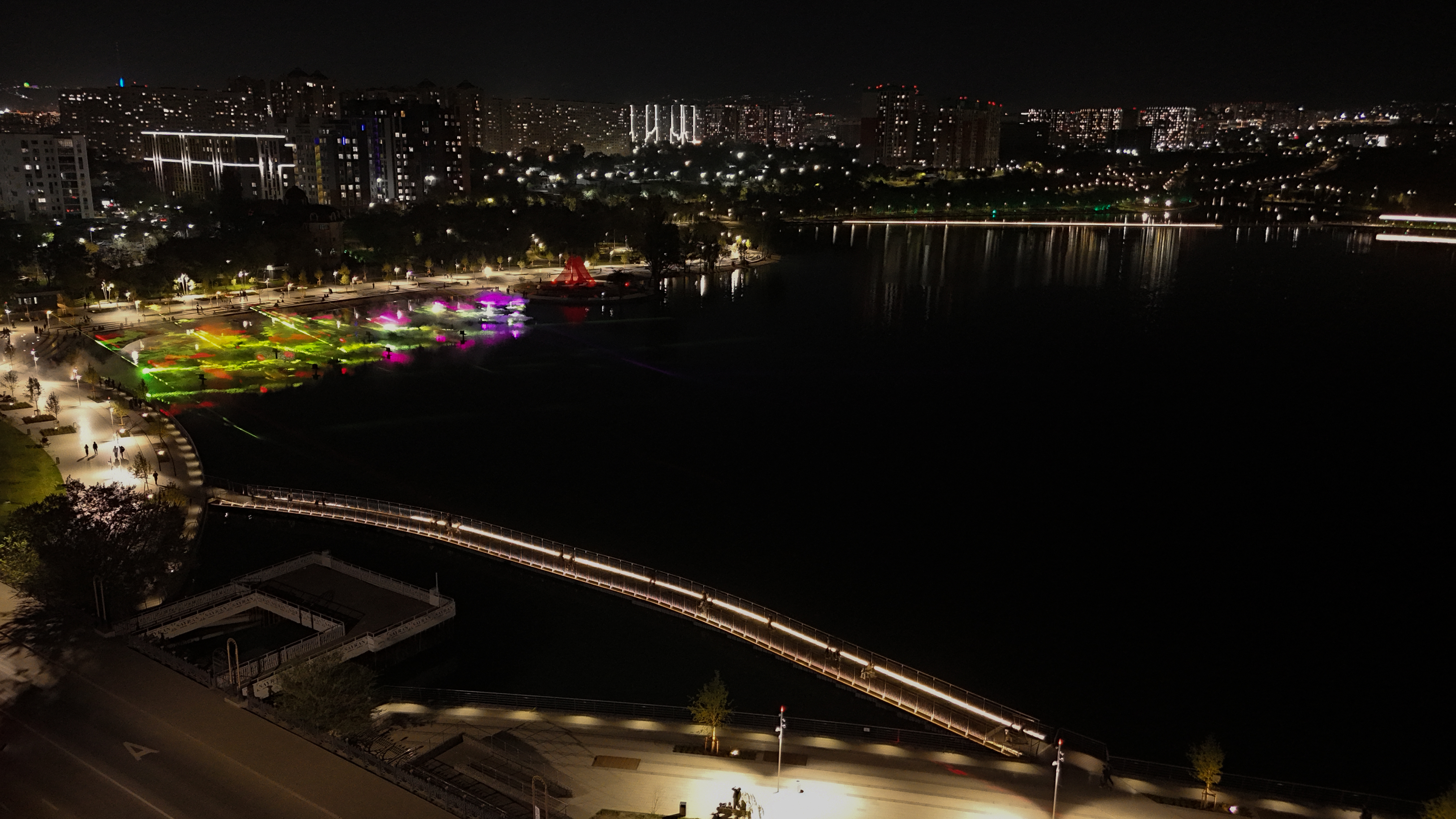 Особое внимание уделено пантонному (плавающему) мосту — одной из уникальных достопримечательностей парка, соединяющей два берега и притягивающей внимание жителей и туристов. Для него выбран камерный тип освещения: мягкий, зеркальный свет у основания конструкции.
